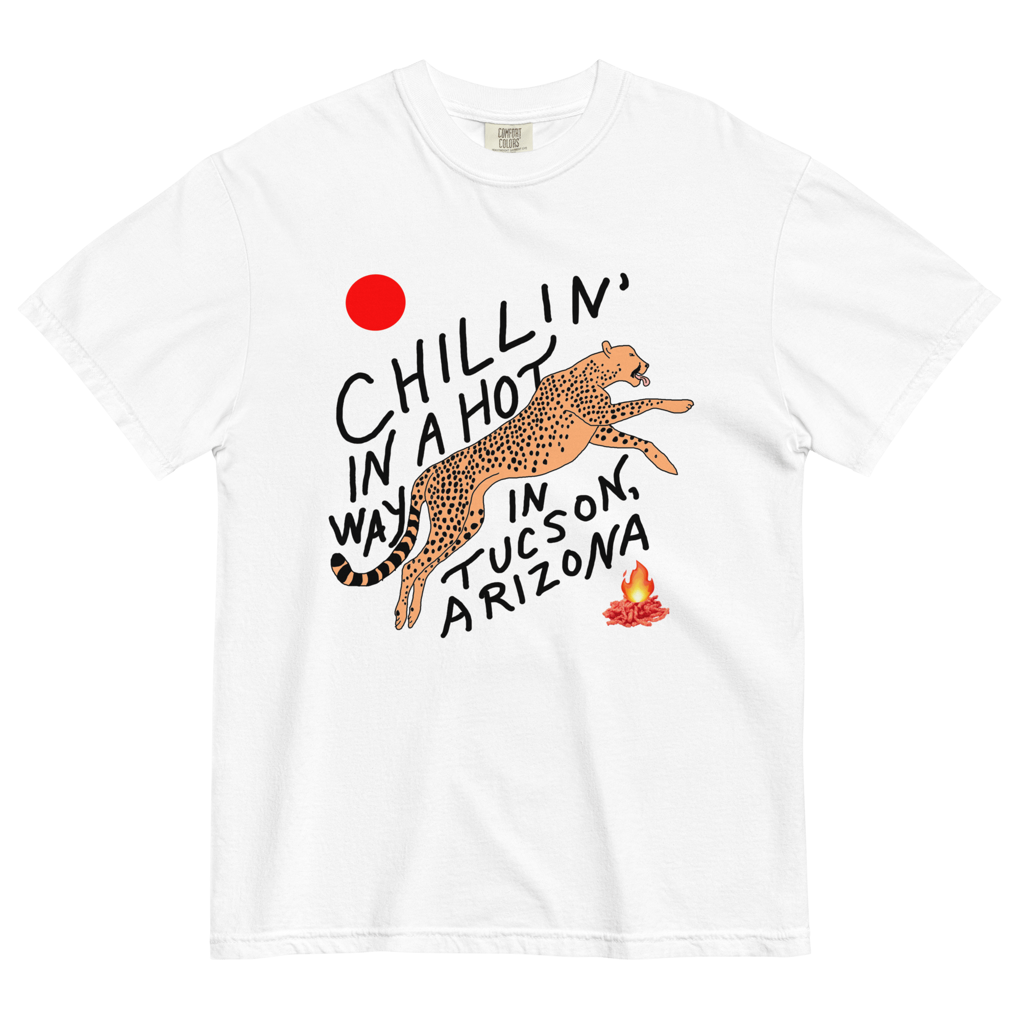 Big Cat Energy! This unisex shirt features a lil Flamin’ hot Cheetos bonfire 👀🔥as well as a Cheetah, a desert cat we do not have in Tucson